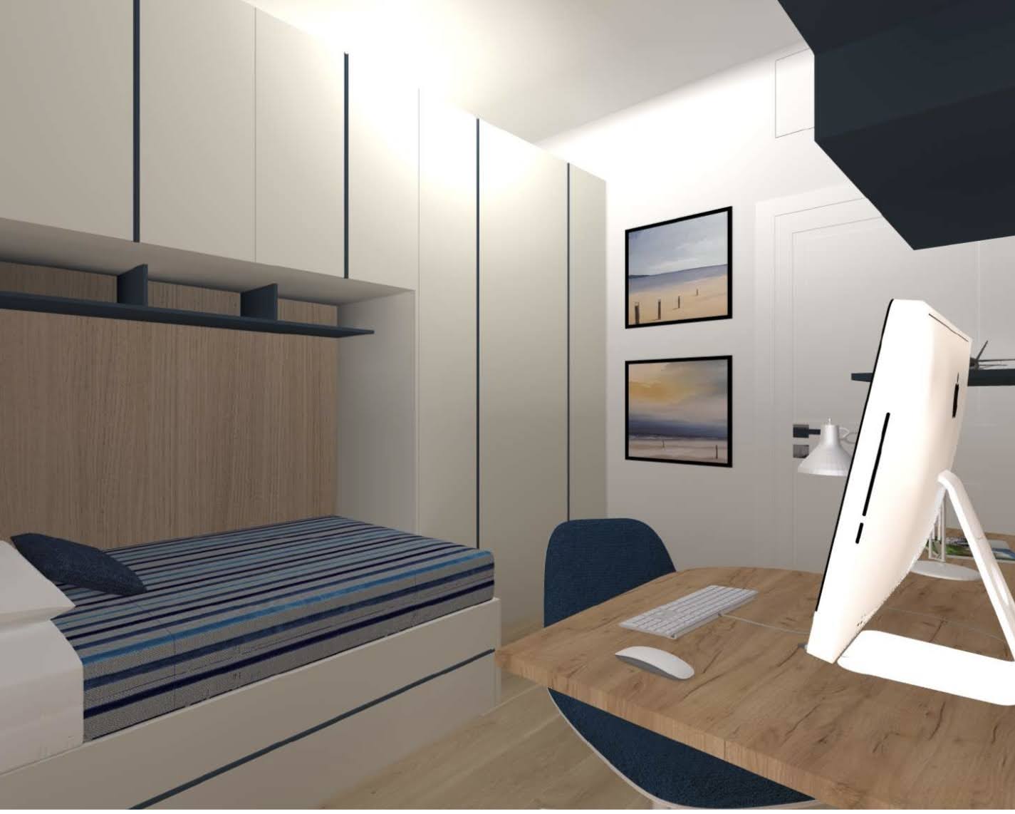 L’immobile si compone di un ampio e luminoso soggiorno con cucina a vista e accesso al balcone vivibile, una camera matrimoniale, una cameretta, bagno padronale con doccia, bagno di servizio e pratico soppalco uso ripostiglio con tre comodi accessi.